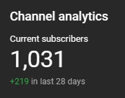 You did it! My Youtube channel reached the goal of 1,000 subscribers and the count kept going! Thank you all for making it happen!
